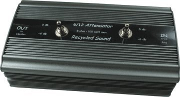 Recycled Sound NEW 6/12 Attenuator. Why 6/12? Engage 1 switch and remove -6db of power. Engage the 2nd switch and your -12db. That equals a volume reduction of 60%.